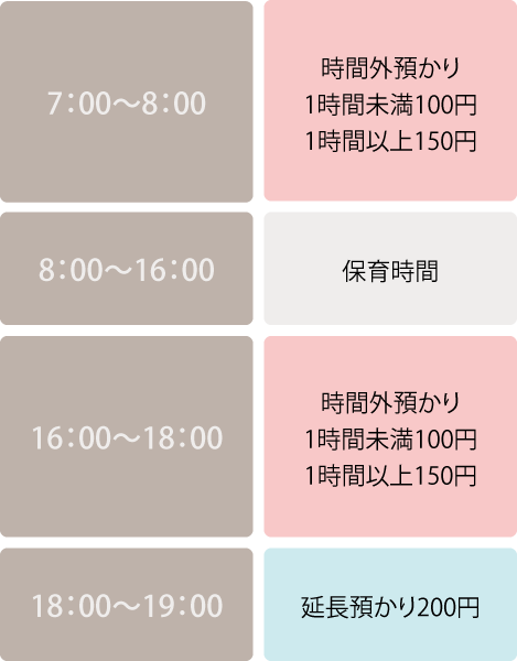 ※お盆や年度末などご家庭における保育をお願いする場合がございます。